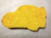Poi ci siamo occupate del secondo piano, ossia una torta identica alla principale ma di dimensioni più ridotte, che abbiamo intagliato a forma di auto aiutandoci con un cartoncino precedentemente sagomato.